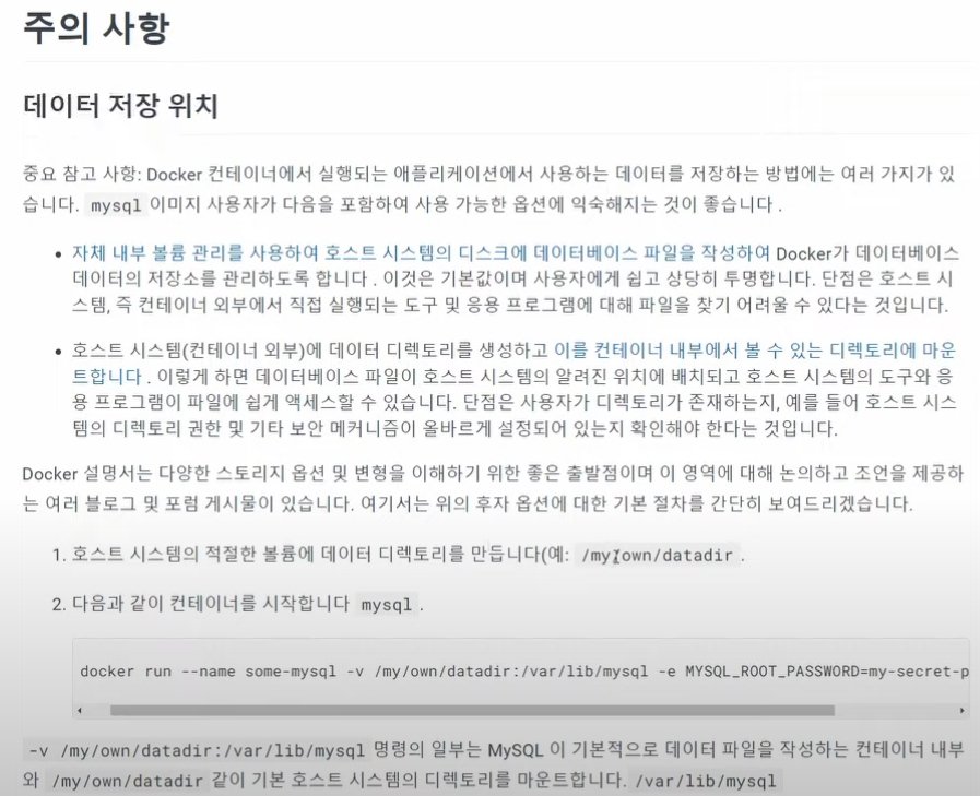 이는 docker hub의 mysql 공식 사이트에도 있는 내용이다.