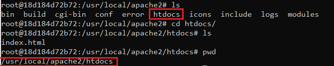 index.html 파일은 /usr/local/apache2/htdocs 에 위치해있다. 해당 파일을 수정하면 웹서버(아파치)에 접근했을 때 나오는 기본 페이지를 변경할 수 있다.