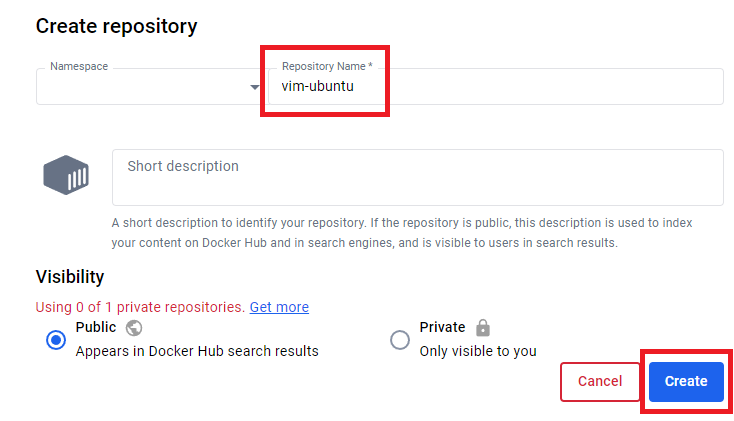 docker hub에 접속하고 나서 repository를 만들어주자.